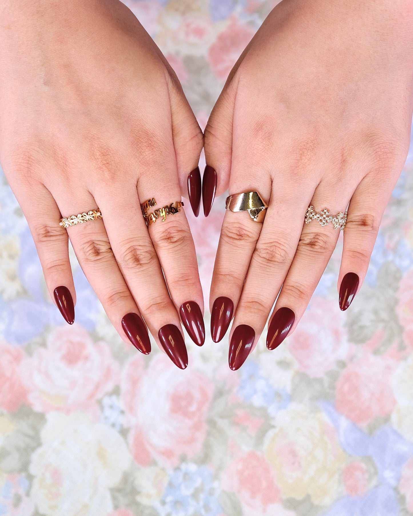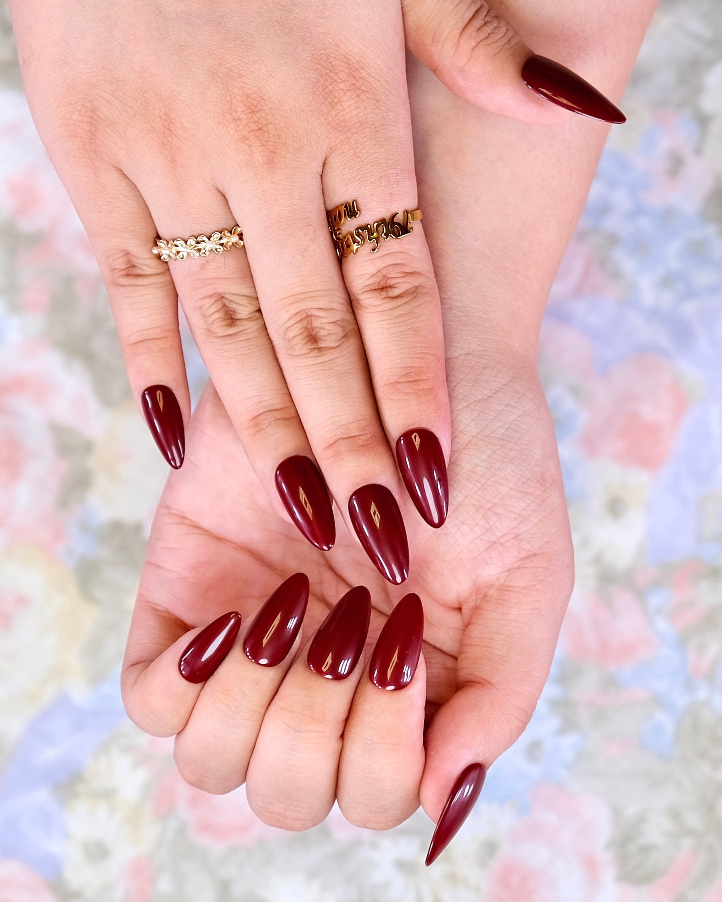 Regular price $23.80“Red Wine” is a handmade press-on nail set featuring a rich, glossy burgundy shade – timeless, elegant, and perfect for adding sophistication to any look.