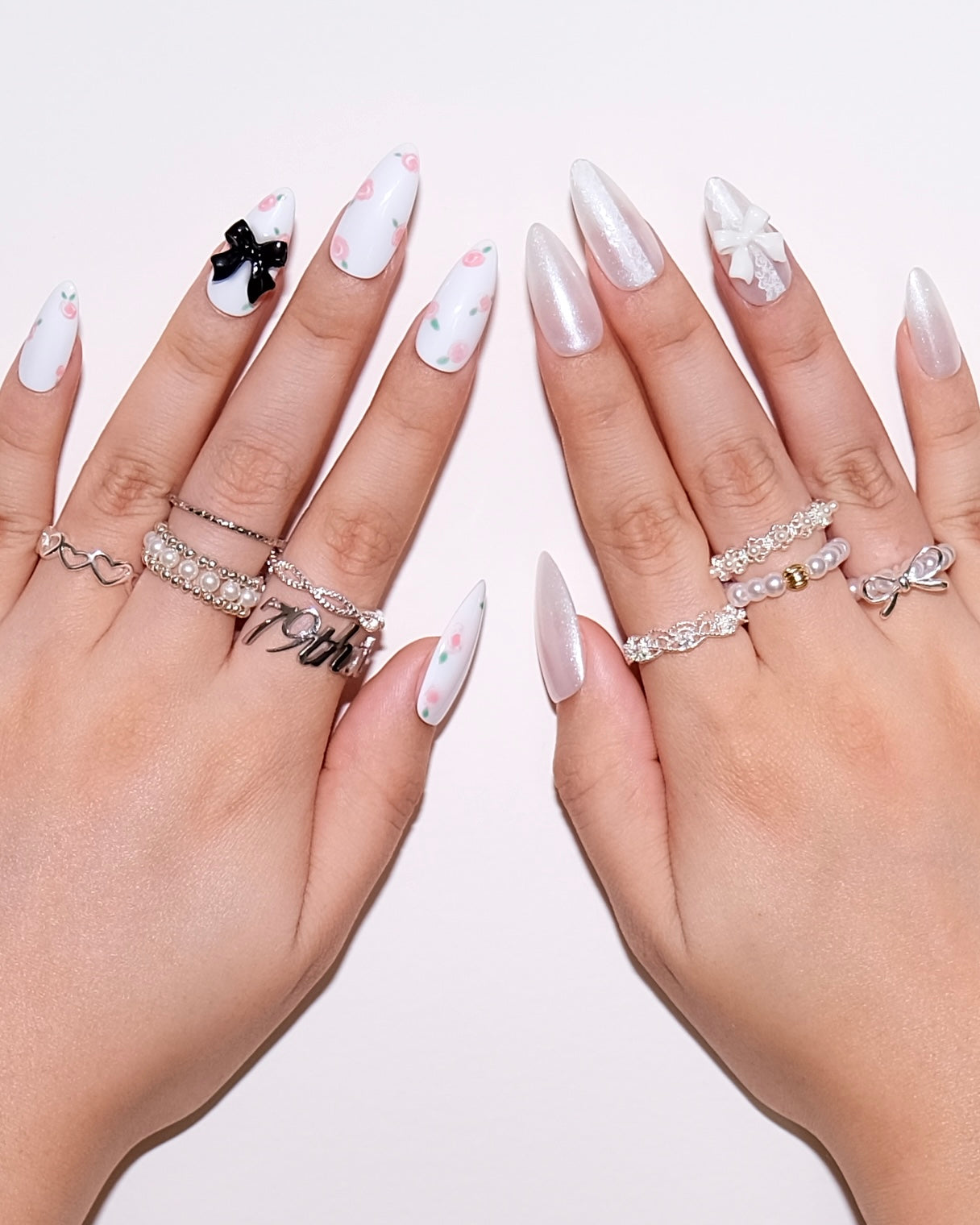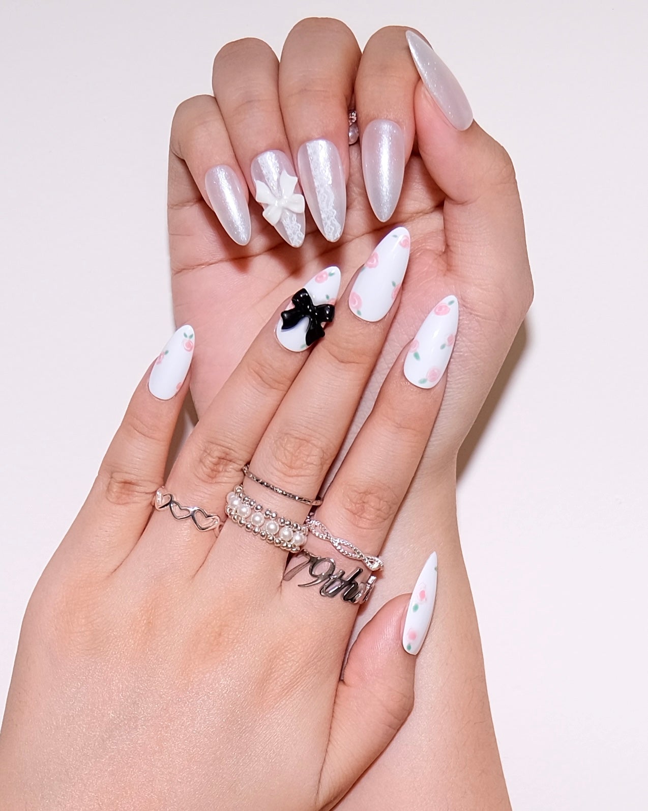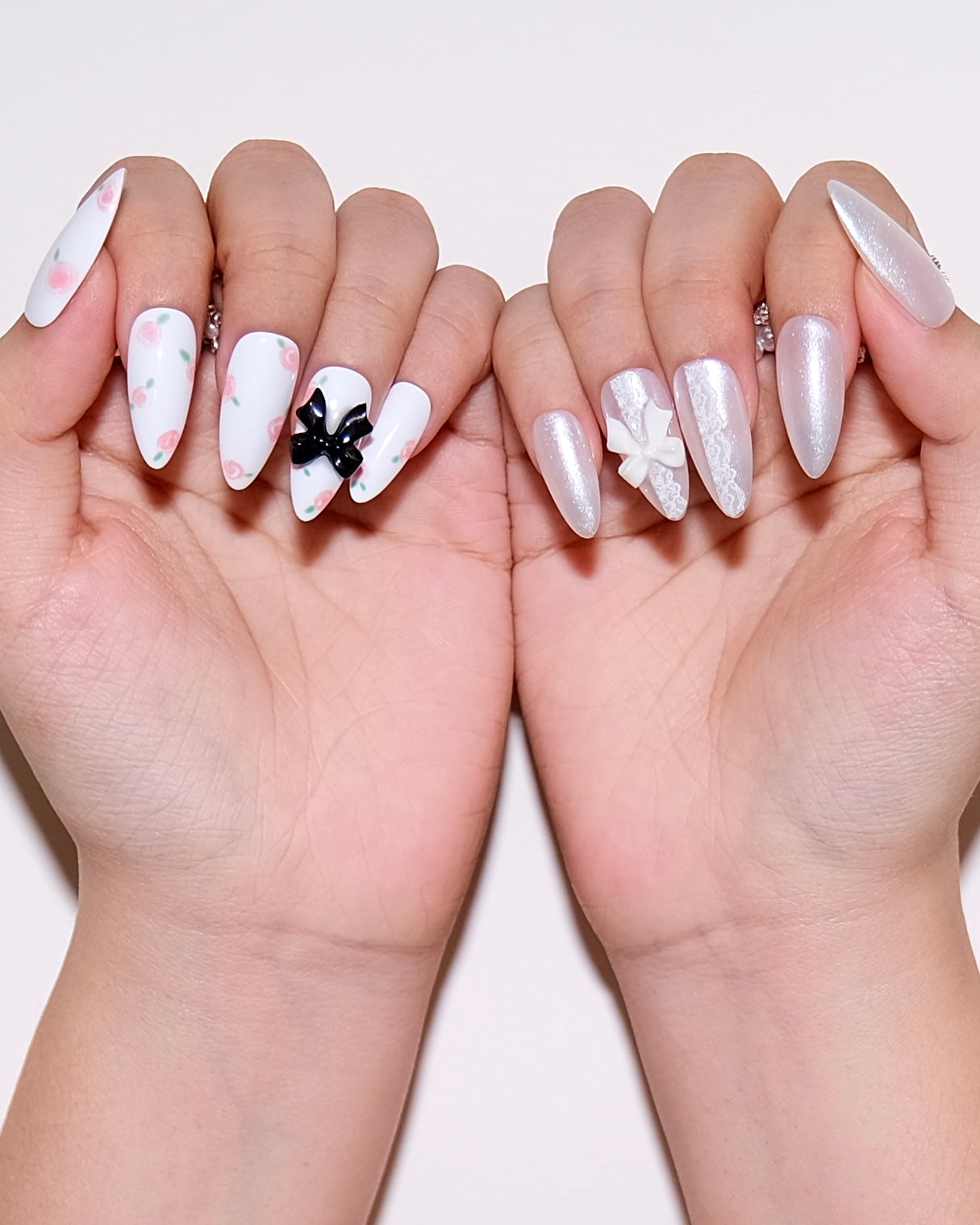 Regular price $29.75“Rose Lace” is a handmade press-on nail set featuring delicate pink roses, soft white bases, and signature coquette bow details.