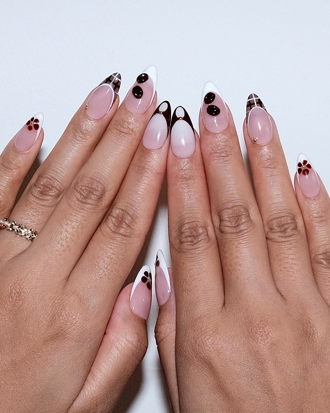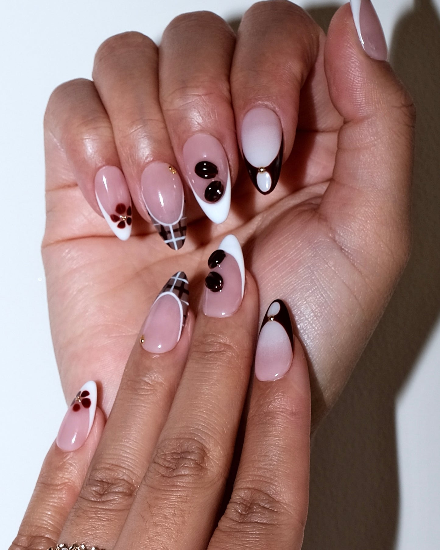 “Coffee Bean” is a handmade press-on nail set featuring rich mocha tones, playful coffee bean accents, and soft nude bases – perfect for cozy, everyday chic with a touch of charm.
